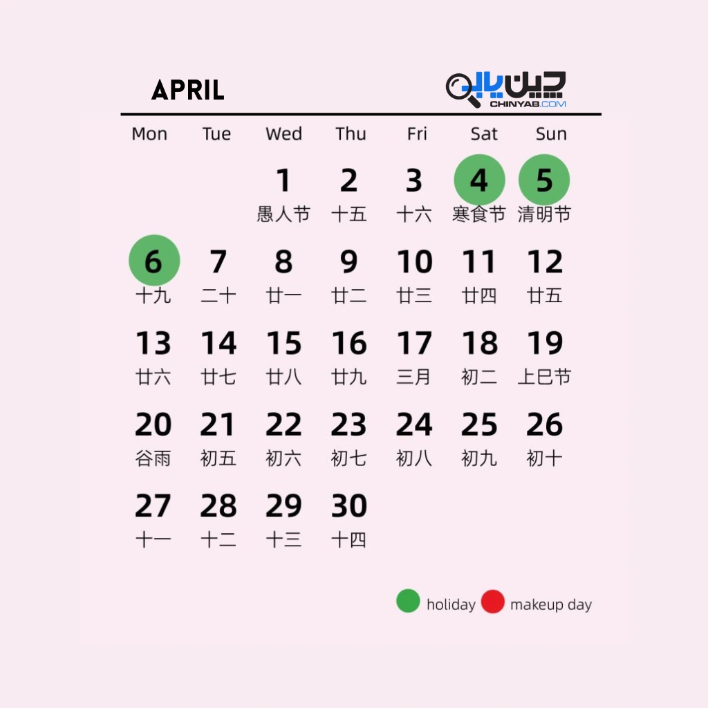 برنامهریزی کسبوکار: تعطیلات بزرگ مانند “عید بهار” باعث تعطیلی طولانیمدت شرکتها میشود. آگاهی از این تاریخها به جلوگیری از تأخیر در تحویل کالاها کمک میکند.