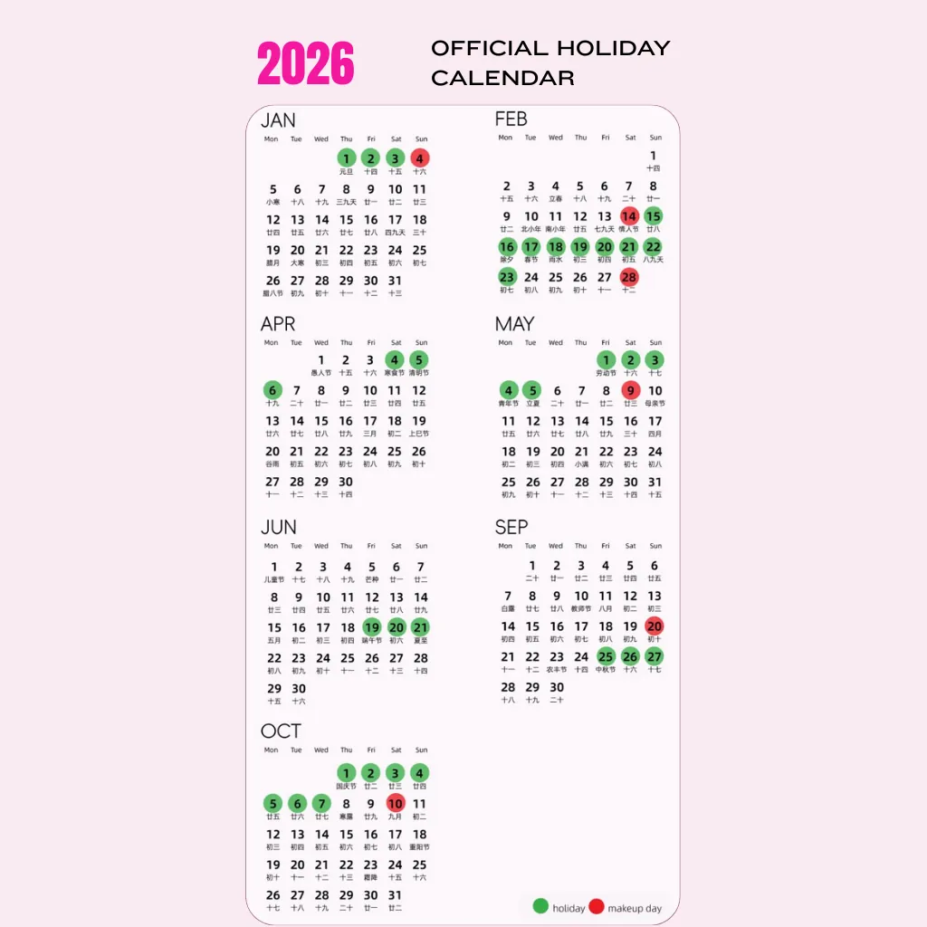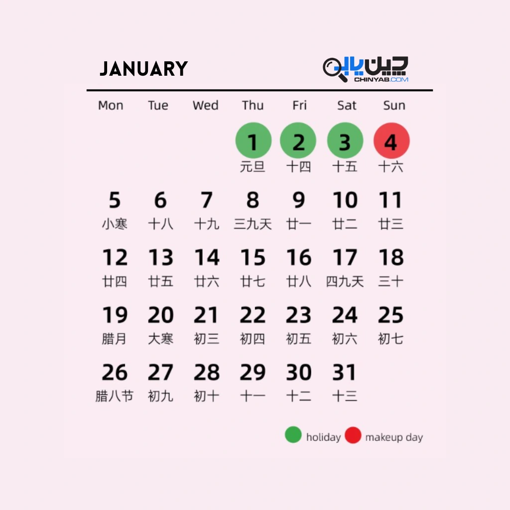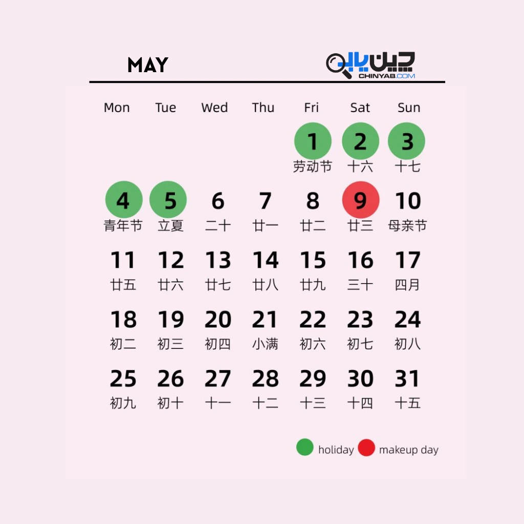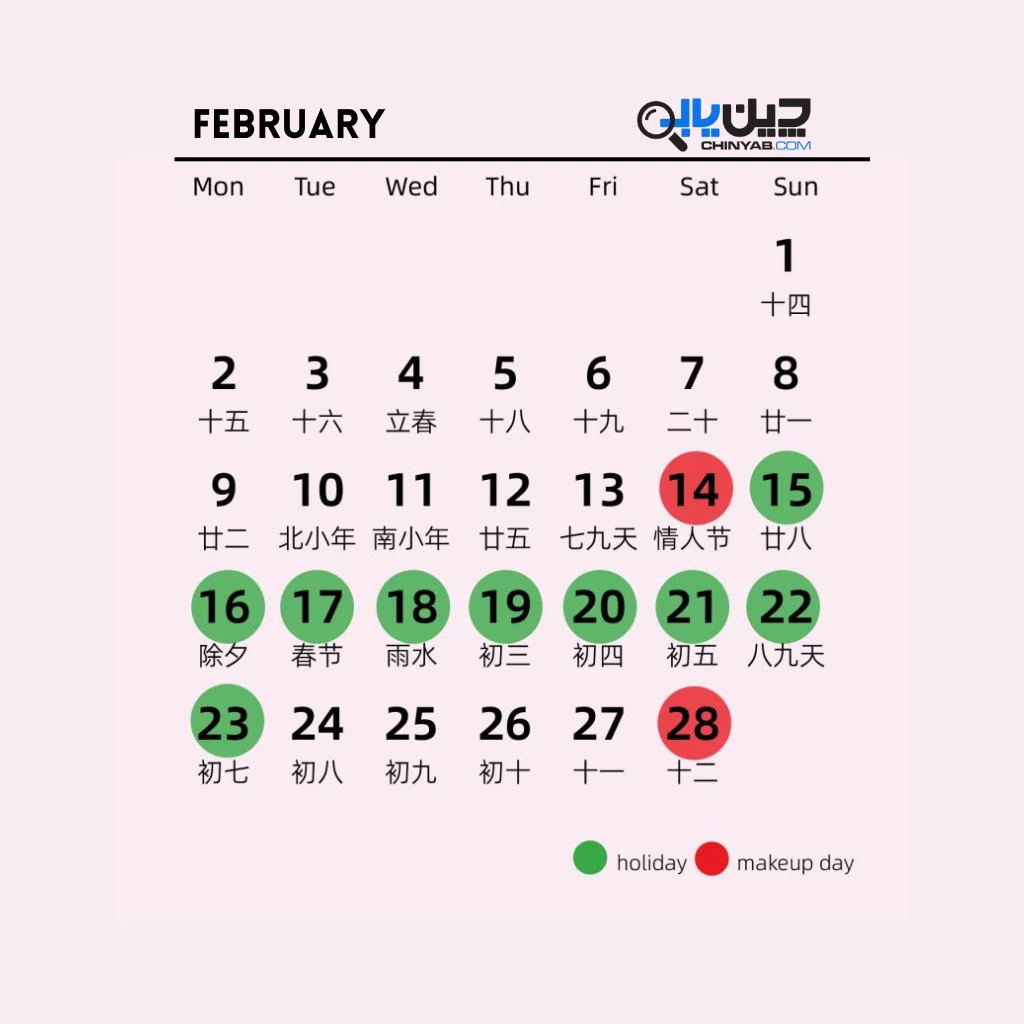 در تقویم تعطیلات رسمی چین ۲۰۲۶، شما با تمامی تعطیلات رسمی چین برای سال ۲۰۲۶ آشنا خواهید شد. این تقویم شامل تمامی جشنها و مناسبتهای مهم ملی و محلی است که در سراسر این کشور پهناور جشن گرفته میشوند. از جشنهای باستانی مثل سال نو چینی تا تعطیلات رسمی و مناسبتهای ملی، همه در این تقویم به طور دقیق ذکر شدهاند. اگر شما برنامهای برای خرید از چین یا شرکت در نمایشگاههای این کشور دارید، توصیه میکنیم حتماً قبل از هر اقدام، نگاهی به تقویم تعطیلات رسمی چین ۲۰۲۶ بیندازید تا بتوانید برنامهریزی دقیقی انجام دهید و از بروز مشکلات احتمالی جلوگیری کنید.
